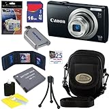 Can Canon PowerShot A2300 16.0 MP Digital Camera with 5x Digital Image Stabilized Zoom (Black) + NB-11L Battery + 16GB Deluxe Accessory Kit