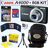 Get it Now! Canon PowerShot A4000 IS 16.0 MP Digital Camera with 8x Optical Image Stabilized Zoom (Black) + 8GB Accessory Kit