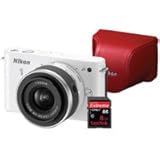 The Nikon 1 J1 is a compact, CX-format interchangeable lens digital camera with a 10.1 MP CMOS image sensor. It features a 3.0" LCD display, can snap photos while recording movies in Full HD (1080p), 10 FPS continuous burst shooting, RAW file recording, and a number of powerful features including Motion Snapshot, Smart Photo Selector and superb low-light performance. Includes the 10-30mm VR II lens, CB-N2000SE Leather Case and SanDisk 8GB SecureDigital SDHC Class 10 Memory Card.